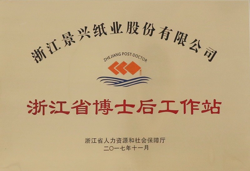 2017.04.景興紙業博士后工作站通過浙江省博士工作站審批,同年11月獲得浙江省人力資源和社會保障局授牌。