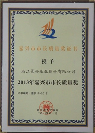 景興紙業榮獲“2013年度嘉興市市長質量獎”。