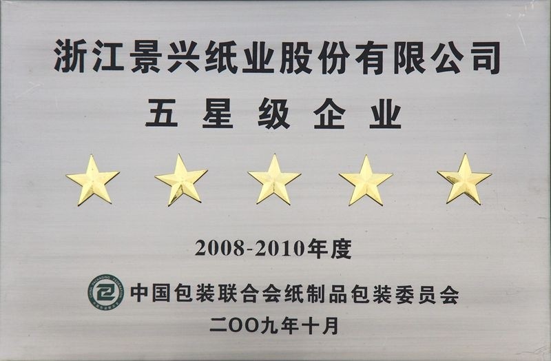 2008.09.景興紙業被全國工商聯紙業商會評為“中華蔡倫獎”杰出企業獎;同年12月,在紀念改革開放30年民營企業系列成就頒獎典禮上,景興紙業榮獲“最具成長性民營企業”榮譽稱號。