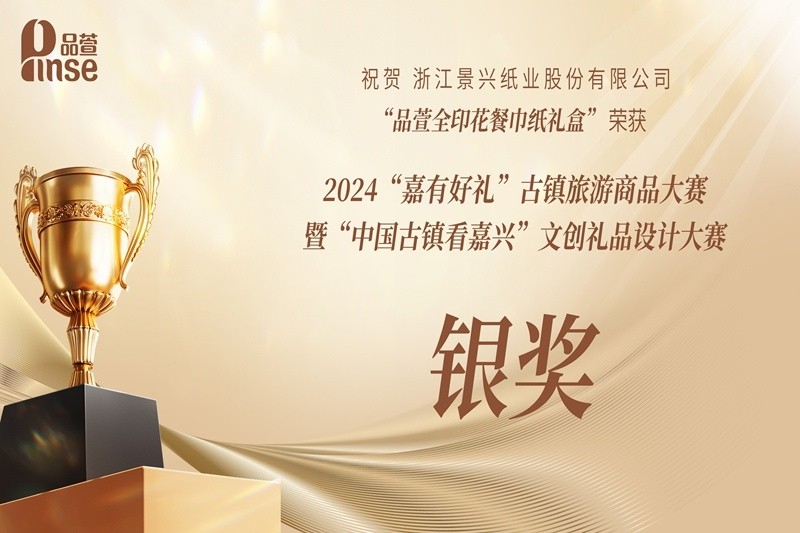 近日,景興紙業“品萱全印花餐巾紙禮盒” 在嘉興市文化廣電旅游局舉辦的2024“嘉有好禮”古鎮旅游商品大賽暨“中國古鎮看嘉興”文創禮品設計大賽上成功摘得銀獎!